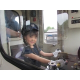 7月26日、陸別町建設業協会のご厚意でりくべつ鉄道乗車体験が行われました。全園児が列車に乗り、乗るのが初めての子も乗ったことのある子も「楽しい」と笑顔が見られました。きりんぐみの数人は、運転体験にも挑戦しました。少し緊張した表情で車掌さんの帽子をかぶり、運転しましたよ。