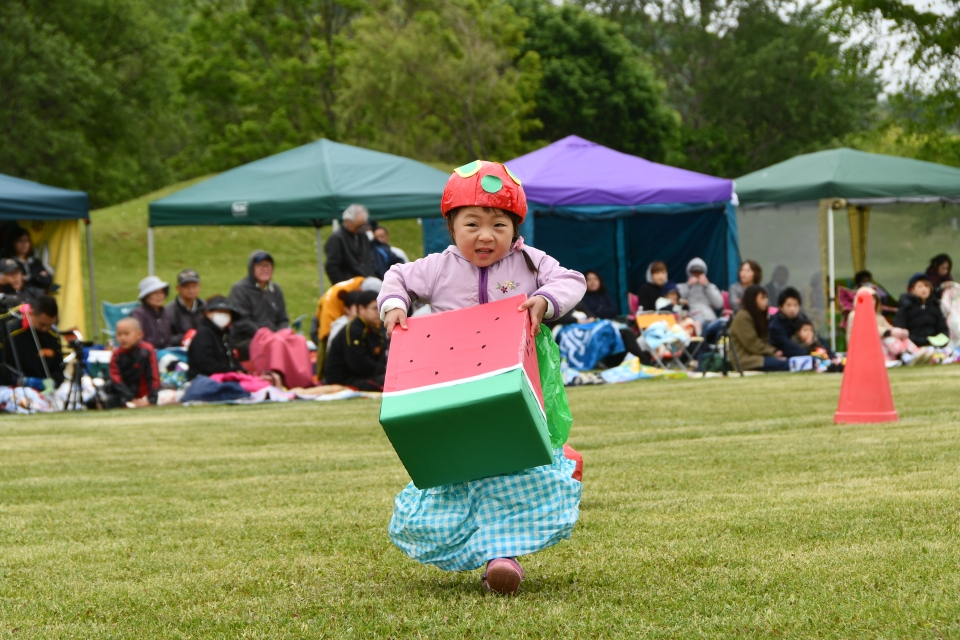 6月17日、運動会が行われました。5歳児きりんぐみは、勇気100%の曲に合わせてバルーンを行いました。遊戯、2.3歳児は『ドラえもん』4.5歳児は『よさこいソーラン』を踊りました。気温が低く肌寒い中での運動会になりましたが、子ども達の一生懸命な姿を見ることができました。毎年恒例の親競技『おたまリレー』と『綱引き』は今年も盛り上がりましたよ。
