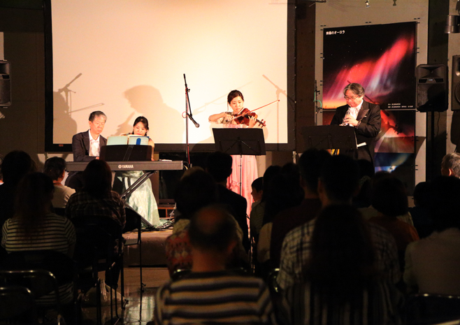 7月9日、スターライトフェスティバルが開催されました。 2016年7月11日(月)更新 イベント 7月9日(土)第8回スターライトフェスティバルが開催されました。中村正人JAXA教授による講演会、アンサンブルグループ「奏楽(そら)」の皆さんのミニコンサート、屋上広場の屋台、そしてサプライズでの中村先生演奏などもりだくさんでした。ご来館頂いた皆様、ご協力頂いた皆様、本当にありがとうございました。 このページの情報に関するお問い合わせ先 銀河の森天文台 電話番号:0156-27-8100FAX:0156-27-8102