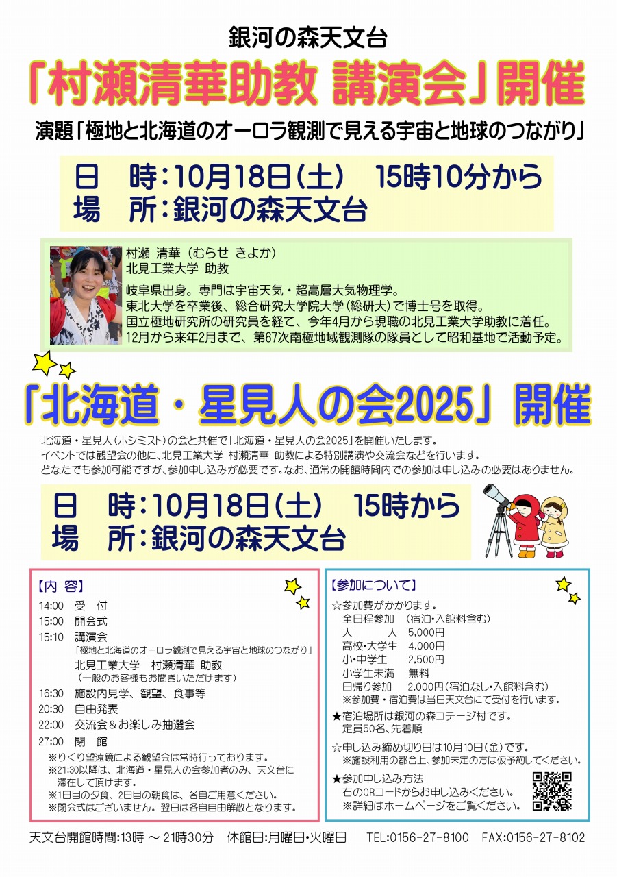なお、10月18日(土)15時からは、「北海道・星見人の会2025 in 銀河の森天文台」開会式が、