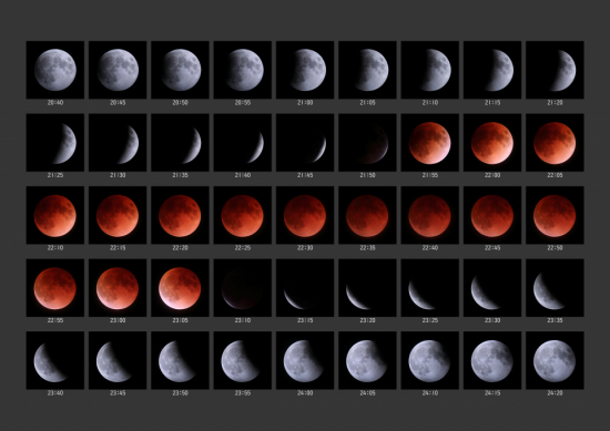 皆既月食は、太陽-地球-月が一直線に並び、地球の影(本影)に月が完全に入る現象です。