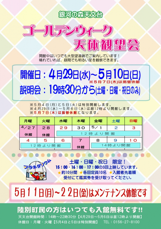 「ゴールデンウィーク天体観望会」