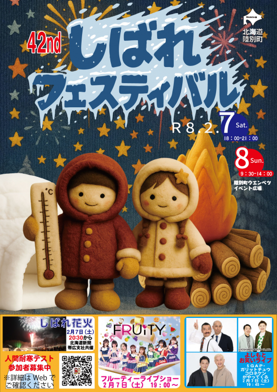 『第42回しばれフェスティバル』は令和8年2月7日(土)~2月8日(日)に開催されます。